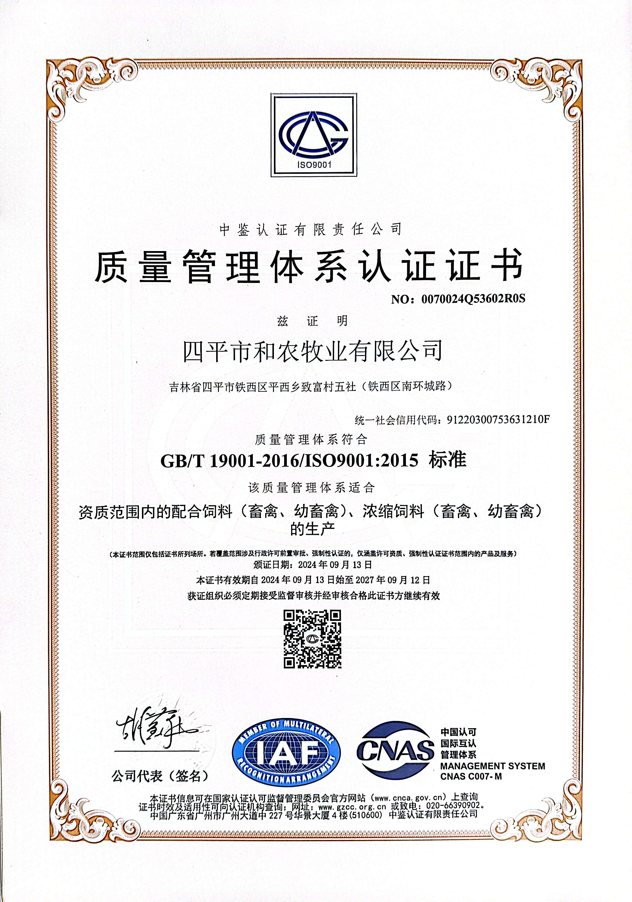 質量管理體系認證證書